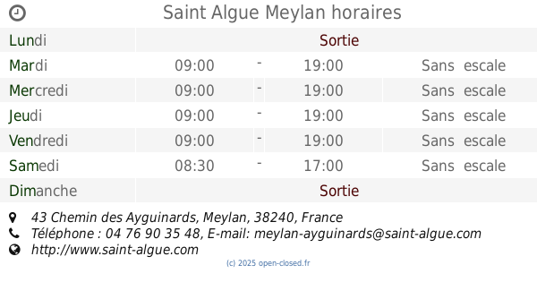 It is also possible to : Modifier ces HEURES D'OUVERTURE of Store Saint Algue Dans Meylan, 43 Chemin des Ayguinards,